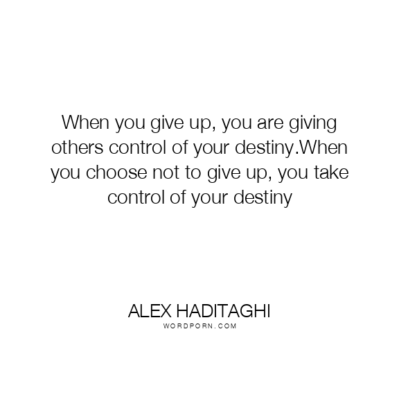 When you give up, you are giving others control of your destiny.When you choose not to give up, you take control of your destiny