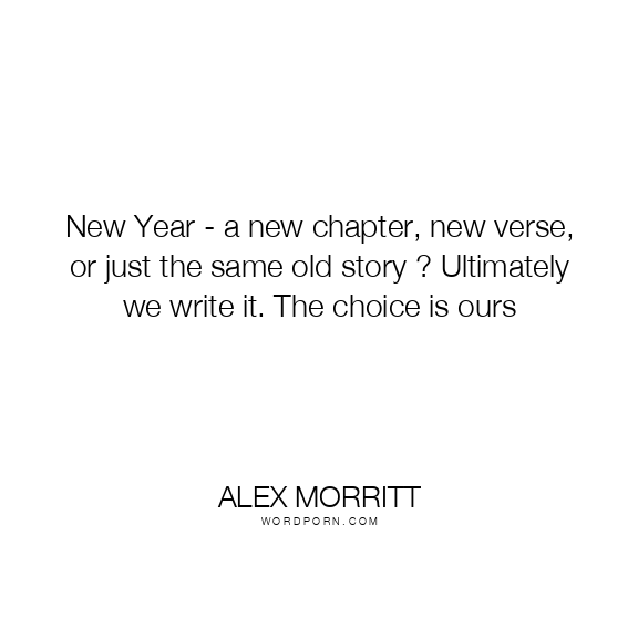 New Year - a new chapter, new verse, or just the same old story ? Ultimately we write it. The choice is ours