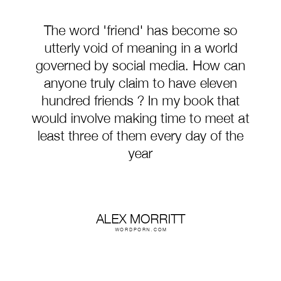 The word 'friend' has become so utterly void of meaning in a world governed by social media. How can anyone truly claim to have eleven hundred friends ? In my book that would involve making time to meet at least three of them every day of the year