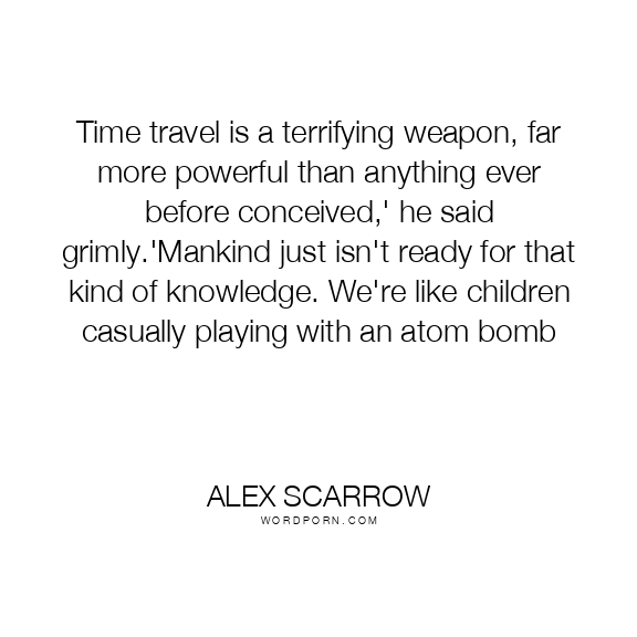 Time travel is a terrifying weapon, far more powerful than anything ever before conceived,' he said grimly.'Mankind just isn't ready for that kind of knowledge. We're like children casually playing with an atom bomb