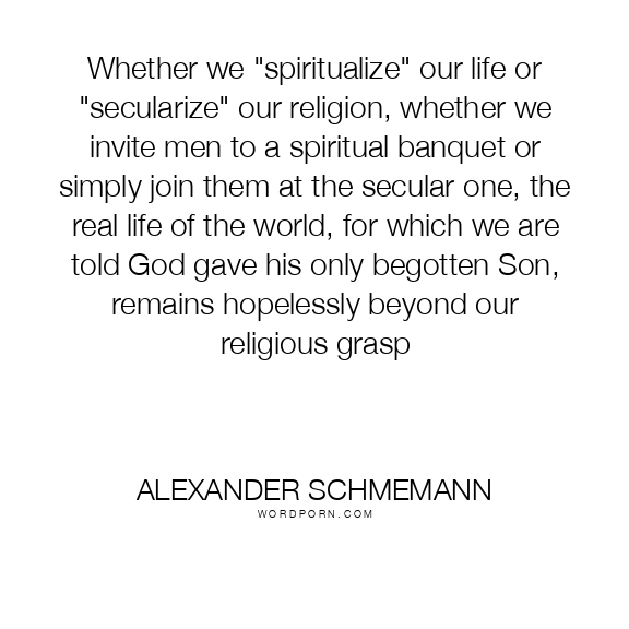 Whether we "spiritualize" our life or "secularize" our religion, whether we invite men to a spiritual banquet or simply join them at the secular one, the real life of the world, for which we are told God gave his only begotten Son, remains hopelessly beyond our religious grasp
