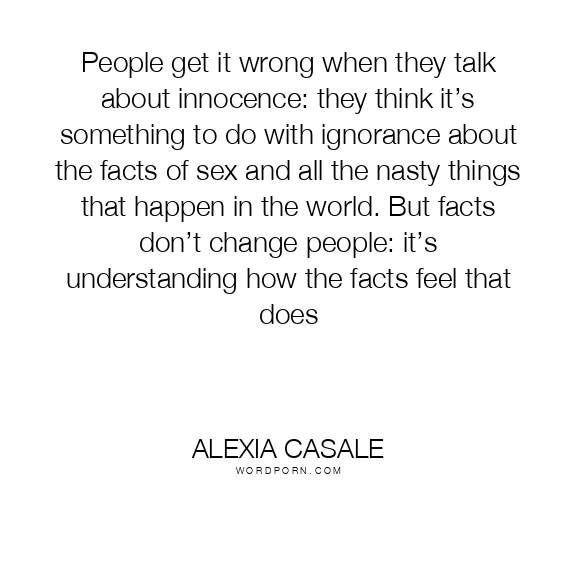 People get it wrong when they talk about innocence: they think it’s something to do with ignorance about the facts of sex and all the nasty things that happen in the world. But facts don’t change people: it’s understanding how the facts feel that does