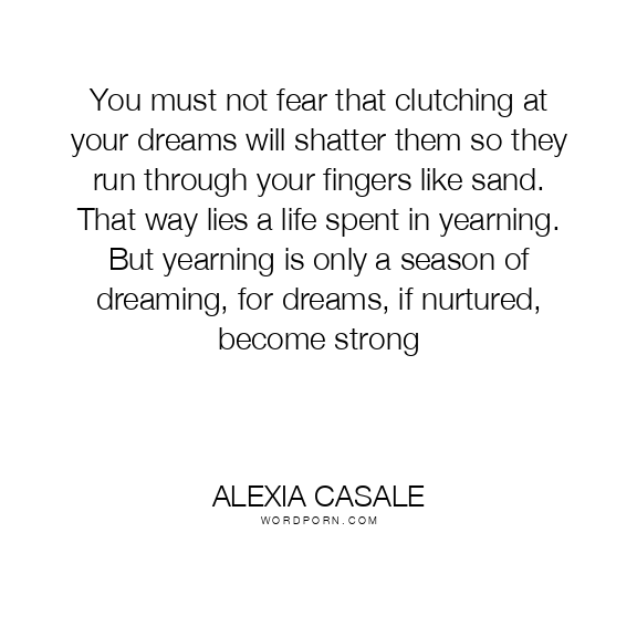 You must not fear that clutching at your dreams will shatter them so they run through your fingers like sand. That way lies a life spent in yearning. But yearning is only a season of dreaming, for dreams, if nurtured, become strong