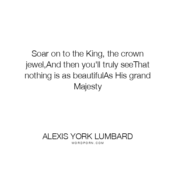 Copy Image Soar on to the King, the crown jewel,And then you'll truly seeThat nothing is as beautifulAs His grand Majesty Moms Typewriter A A SAVE THIS IMAGE