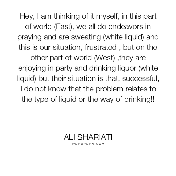 Hey, I am thinking of it myself, in this part of world (East), we all do endeavors in praying and are sweating (white liquid) and this is our situation, frustrated , but on the other part of world (West) ,they are enjoying in party and drinking liquor (white liquid) but their situation is that, successful, I do not know that the problem relates to the type of liquid or the way of drinking!!