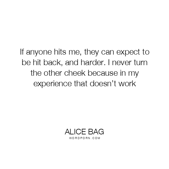If anyone hits me, they can expect to be hit back, and harder. I never turn the other cheek because in my experience that doesn’t work