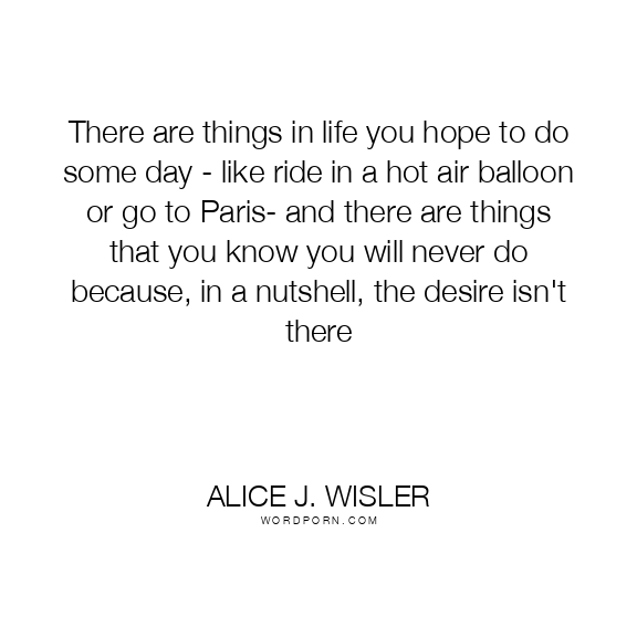 There are things in life you hope to do some day - like ride in a hot air balloon or go to Paris- and there are things that you know you will never do because, in a nutshell, the desire isn't there