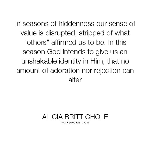 In seasons of hiddenness our sense of value is disrupted, stripped of what "others" affirmed us to be. In this season God intends to give us an unshakable identity in Him, that no amount of adoration nor rejection can alter