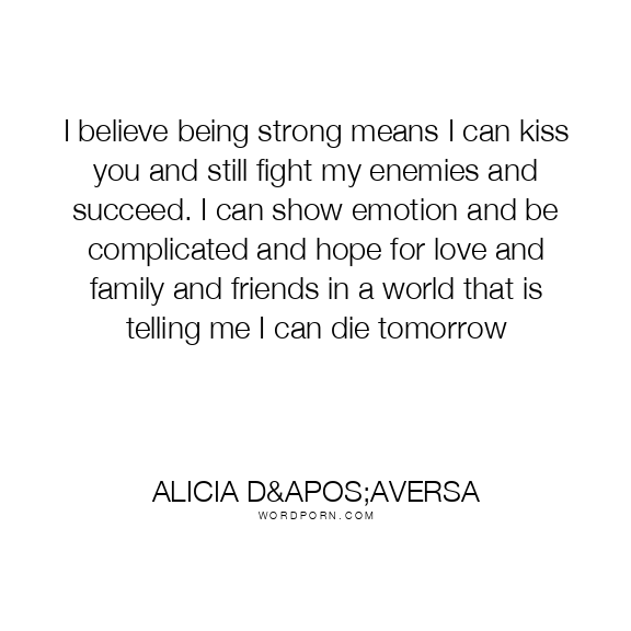 I believe being strong means I can kiss you and still fight my enemies and succeed. I can show emotion and be complicated and hope for love and family and friends in a world that is telling me I can die tomorrow