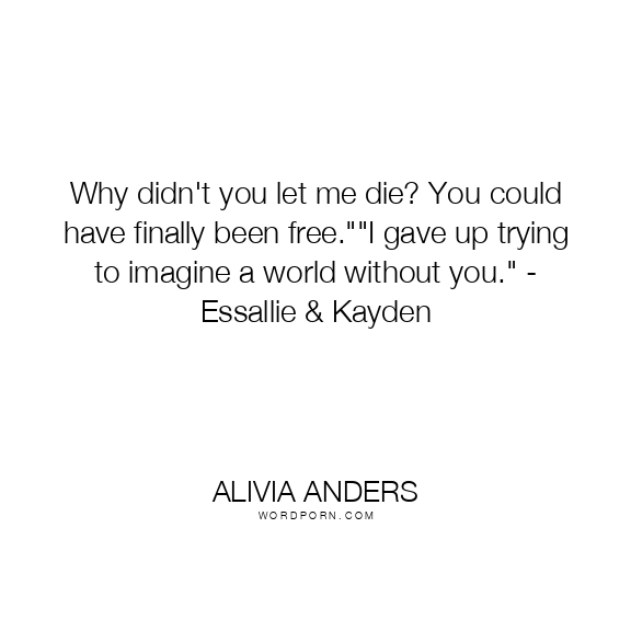 Copy Image Why didn't you let me die? You could have finally been free.""I gave up trying to imagine a world without you." - Essallie & Kayden Moms Typewriter A A SAVE THIS IMAGE