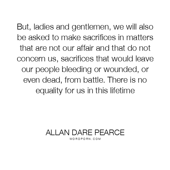 But, ladies and gentlemen, we will also be asked to make sacrifices in matters that are not our affair and that do not concern us, sacrifices that would leave our people bleeding or wounded, or even dead, from battle. There is no equality for us in this lifetime
