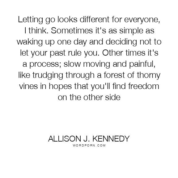 Letting go looks different for everyone, I think. Sometimes it's as simple as waking up one day and deciding not to let your past rule you. Other times it's a process; slow moving and painful, like trudging through a forest of thorny vines in hopes that you'll find freedom on the other side