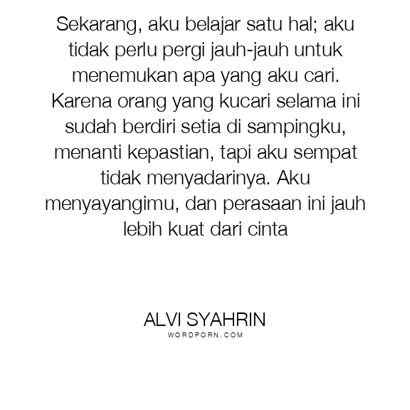 Sekarang, aku belajar satu hal; aku tidak perlu pergi jauh-jauh untuk menemukan apa yang aku cari. Karena orang yang kucari selama ini sudah berdiri setia di sampingku, menanti kepastian, tapi aku sempat tidak menyadarinya. Aku menyayangimu, dan perasaan ini jauh lebih kuat dari cinta