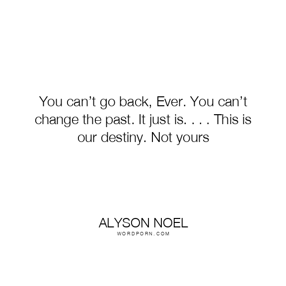 You can’t go back, Ever. You can’t change the past. It just is. . . . This is our destiny. Not yours