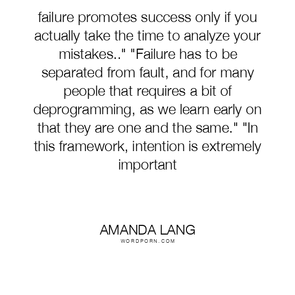 failure promotes success only if you actually take the time to analyze your mistakes.." "Failure has to be separated from fault, and for many people that requires a bit of deprogramming, as we learn early on that they are one and the same." "In this framework, intention is extremely important