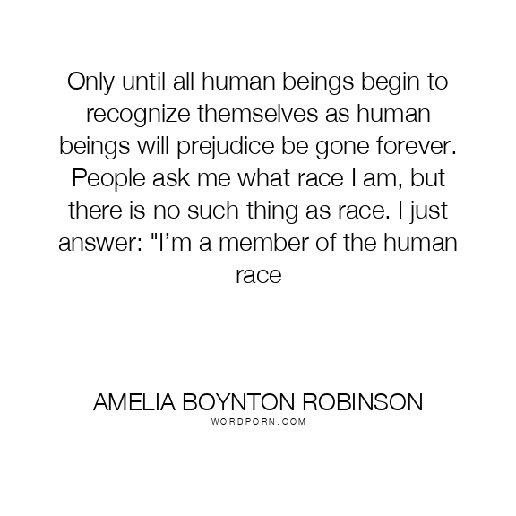 Only until all human beings begin to recognize themselves as human beings will prejudice be gone forever. People ask me what race I am, but there is no such thing as race. I just answer: "I’m a member of the human race