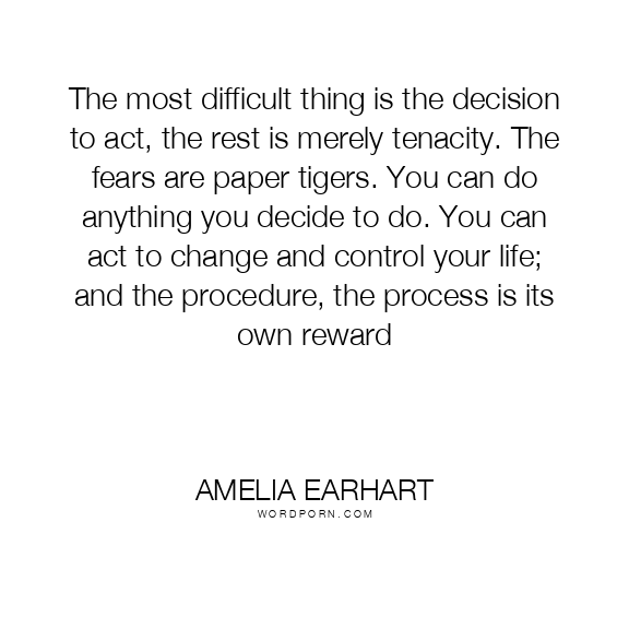 The most difficult thing is the decision to act, the rest is merely tenacity. The fears are paper tigers. You can do anything you decide to do. You can act to change and control your life; and the procedure, the process is its own reward