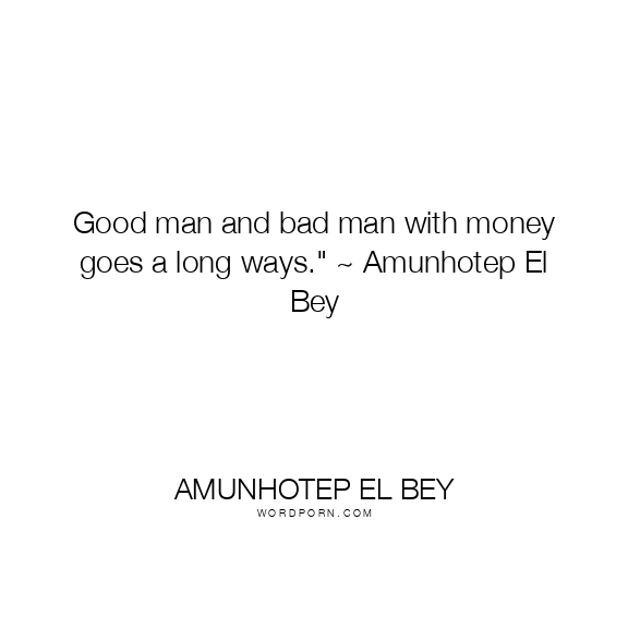 Good man and bad man with money goes a long ways." ~ Amunhotep El Bey