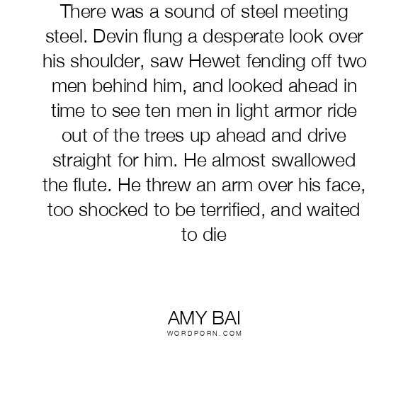There was a sound of steel meeting steel. Devin flung a desperate look over his shoulder, saw Hewet fending off two men behind him, and looked ahead in time to see ten men in light armor ride out of the trees up ahead and drive straight for him. He almost swallowed the flute. He threw an arm over his face, too shocked to be terrified, and waited to die