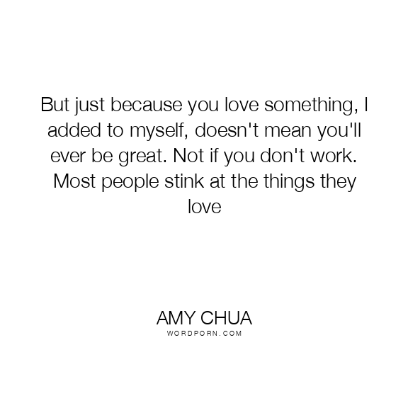 But just because you love something, I added to myself, doesn't mean you'll ever be great. Not if you don't work. Most people stink at the things they love