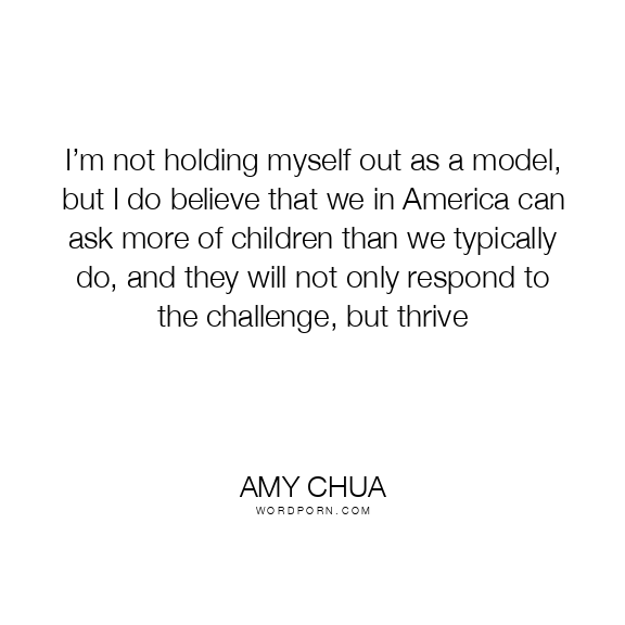 I’m not holding myself out as a model, but I do believe that we in America can ask more of children than we typically do, and they will not only respond to the challenge, but thrive