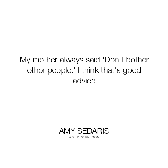 My mother always said 'Don't bother other people.' I think that's good advice
