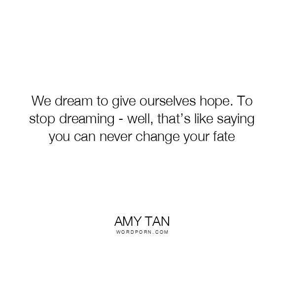 We dream to give ourselves hope. To stop dreaming - well, that’s like saying you can never change your fate