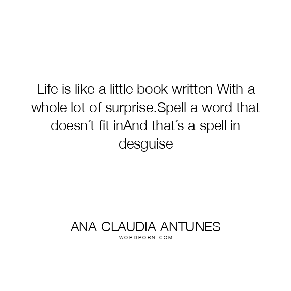 Life is like a little book written With a whole lot of surprise.Spell a word that doesn´t fit inAnd that´s a spell in desguise
