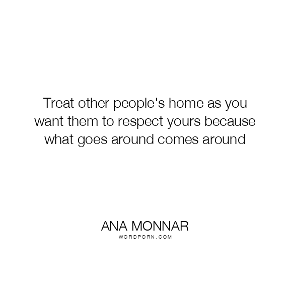 Treat other people's home as you want them to respect yours because what goes around comes around