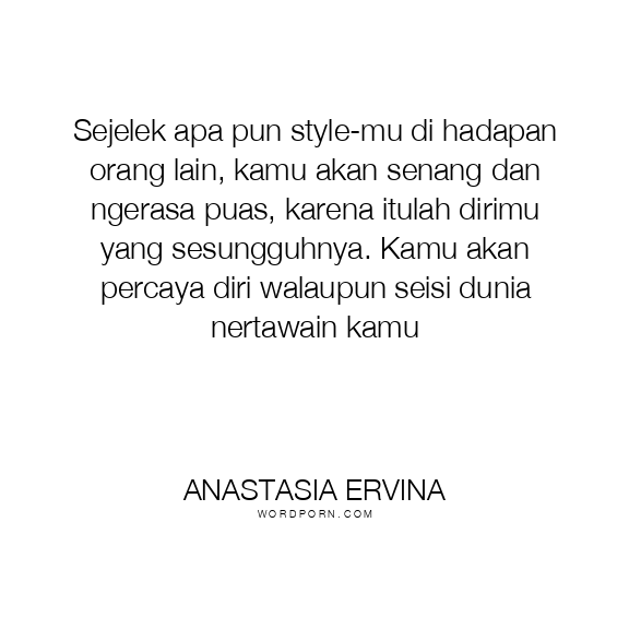 Sejelek apa pun style-mu di hadapan orang lain, kamu akan senang dan ngerasa puas, karena itulah dirimu yang sesungguhnya. Kamu akan percaya diri walaupun seisi dunia nertawain kamu