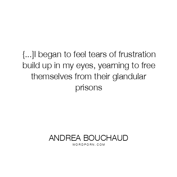 {...]I began to feel tears of frustration build up in my eyes, yearning to free themselves from their glandular prisons