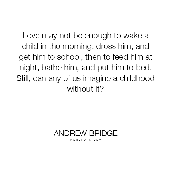 Love may not be enough to wake a child in the morning, dress him, and get him to school, then to feed him at night, bathe him, and put him to bed. Still, can any of us imagine a childhood without it?