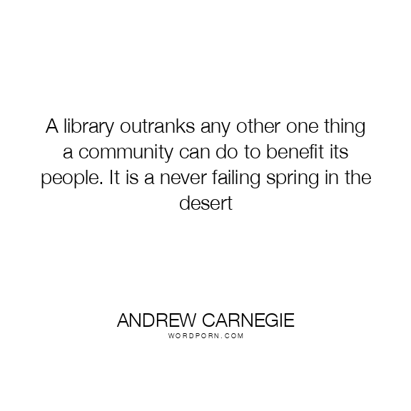 A library outranks any other one thing a community can do to benefit its people. It is a never failing spring in the desert