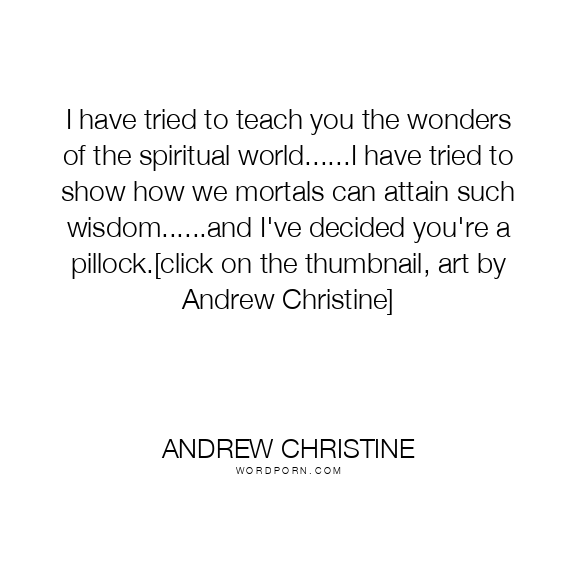 I have tried to teach you the wonders of the spiritual world......I have tried to show how we mortals can attain such wisdom......and I've decided you're a pillock.[click on the thumbnail, art by Andrew Christine]