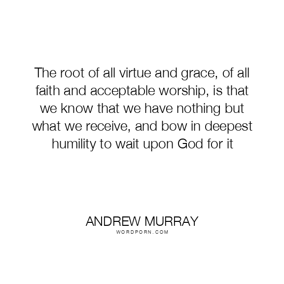 The root of all virtue and grace, of all faith and acceptable worship, is that we know that we have nothing but what we receive, and bow in deepest humility to wait upon God for it