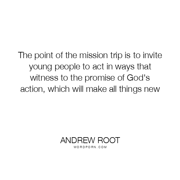 The point of the mission trip is to invite young people to act in ways that witness to the promise of God's action, which will make all things new