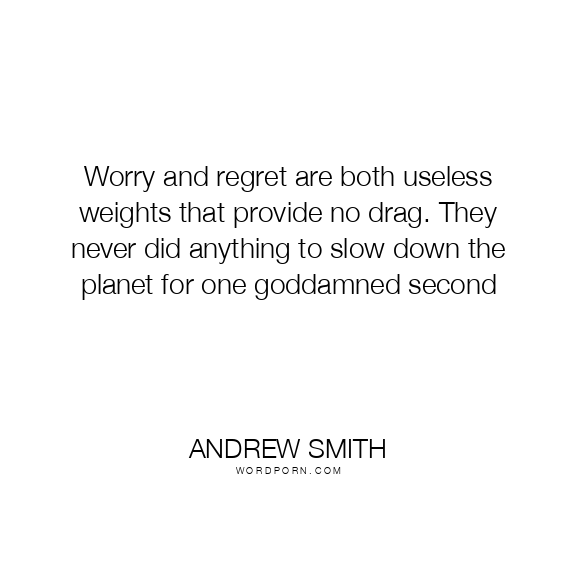 Worry and regret are both useless weights that provide no drag. They never did anything to slow down the planet for one goddamned second
