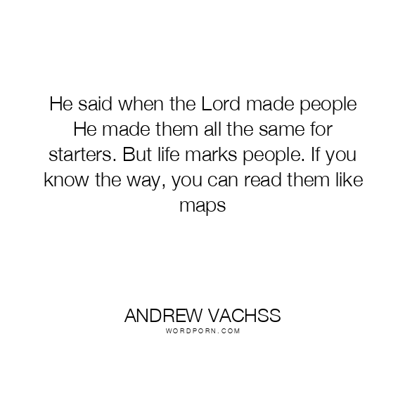 He said when the Lord made people He made them all the same for starters. But life marks people. If you know the way, you can read them like maps