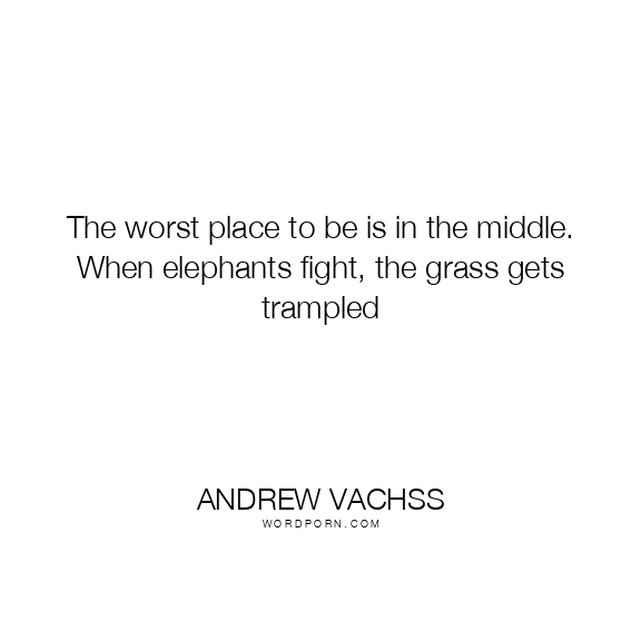 The worst place to be is in the middle. When elephants fight, the grass gets trampled