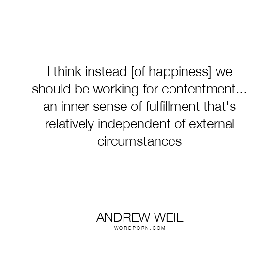 I think instead [of happiness] we should be working for contentment... an inner sense of fulfillment that's relatively independent of external circumstances