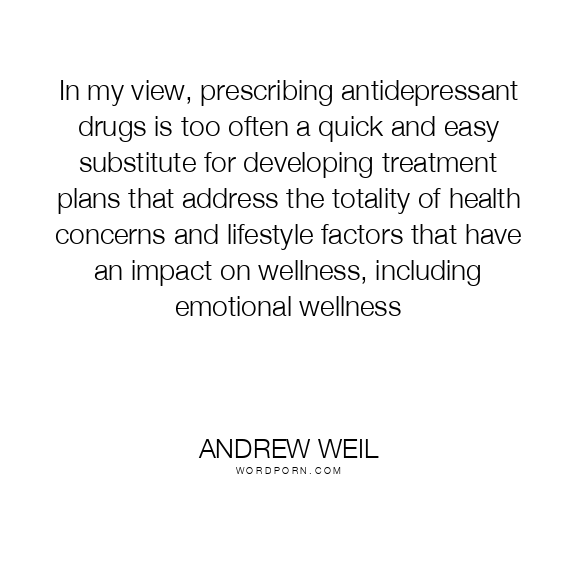 In my view, prescribing antidepressant drugs is too often a quick and easy substitute for developing treatment plans that address the totality of health concerns and lifestyle factors that have an impact on wellness, including emotional wellness