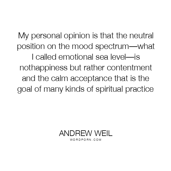 My personal opinion is that the neutral position on the mood spectrum—what I called emotional sea level—is nothappiness but rather contentment and the calm acceptance that is the goal of many kinds of spiritual practice