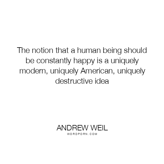 The notion that a human being should be constantly happy is a uniquely modern, uniquely American, uniquely destructive idea
