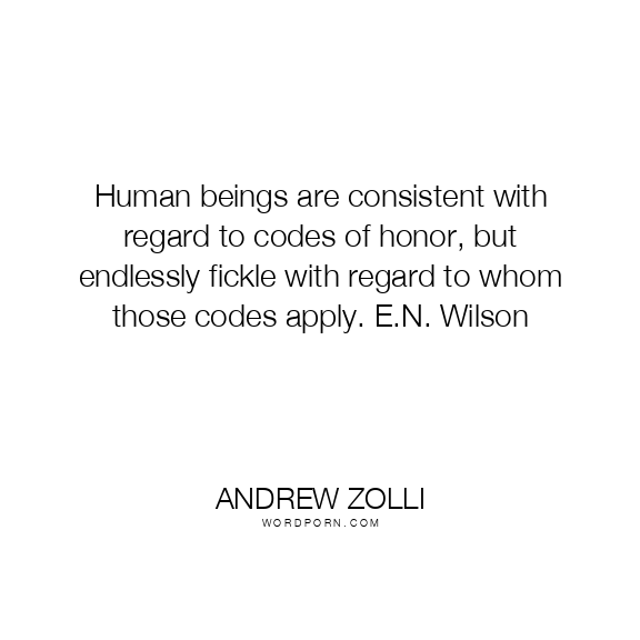 Human beings are consistent with regard to codes of honor, but endlessly fickle with regard to whom those codes apply. E.N. Wilson
