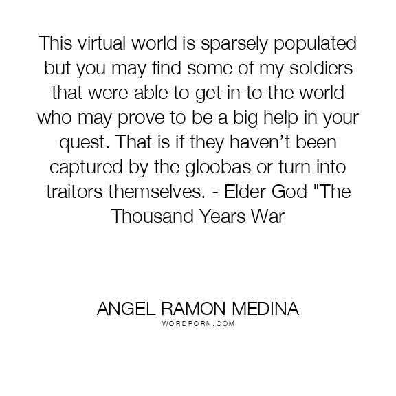 This virtual world is sparsely populated but you may find some of my soldiers that were able to get in to the world who may prove to be a big help in your quest. That is if they haven’t been captured by the gloobas or turn into traitors themselves. - Elder God "The Thousand Years War