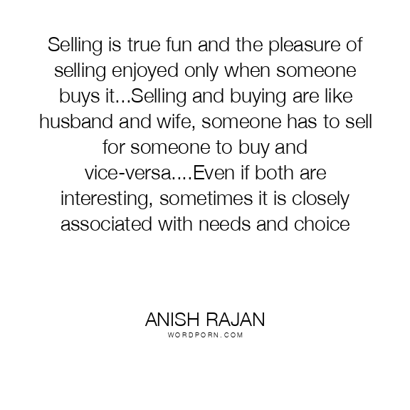 Selling is true fun and the pleasure of selling enjoyed only when someone buys it...Selling and buying are like husband and wife, someone has to sell for someone to buy and vice-versa....Even if both are interesting, sometimes it is closely associated with needs and choice