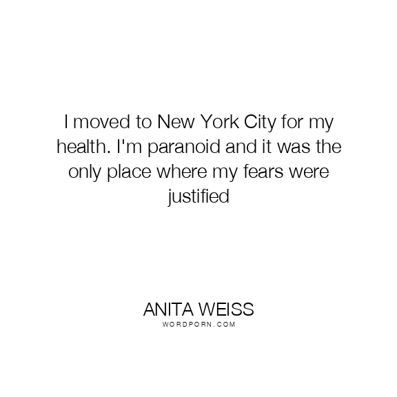 Copy Image I moved to New York City for my health. I'm paranoid and it was the only place where my fears were justified Moms Typewriter A A SAVE THIS IMAGE
