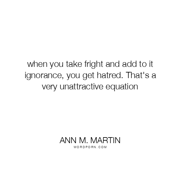when you take fright and add to it ignorance, you get hatred. That's a very unattractive equation