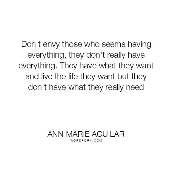 Don't envy those who seems having everything, they don't really have everything. They have what they want and live the life they want but they don't have what they really need