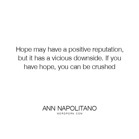 Hope may have a positive reputation, but it has a vicious downside. If you have hope, you can be crushed